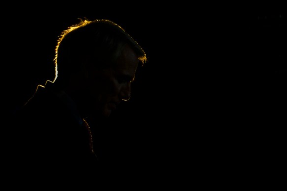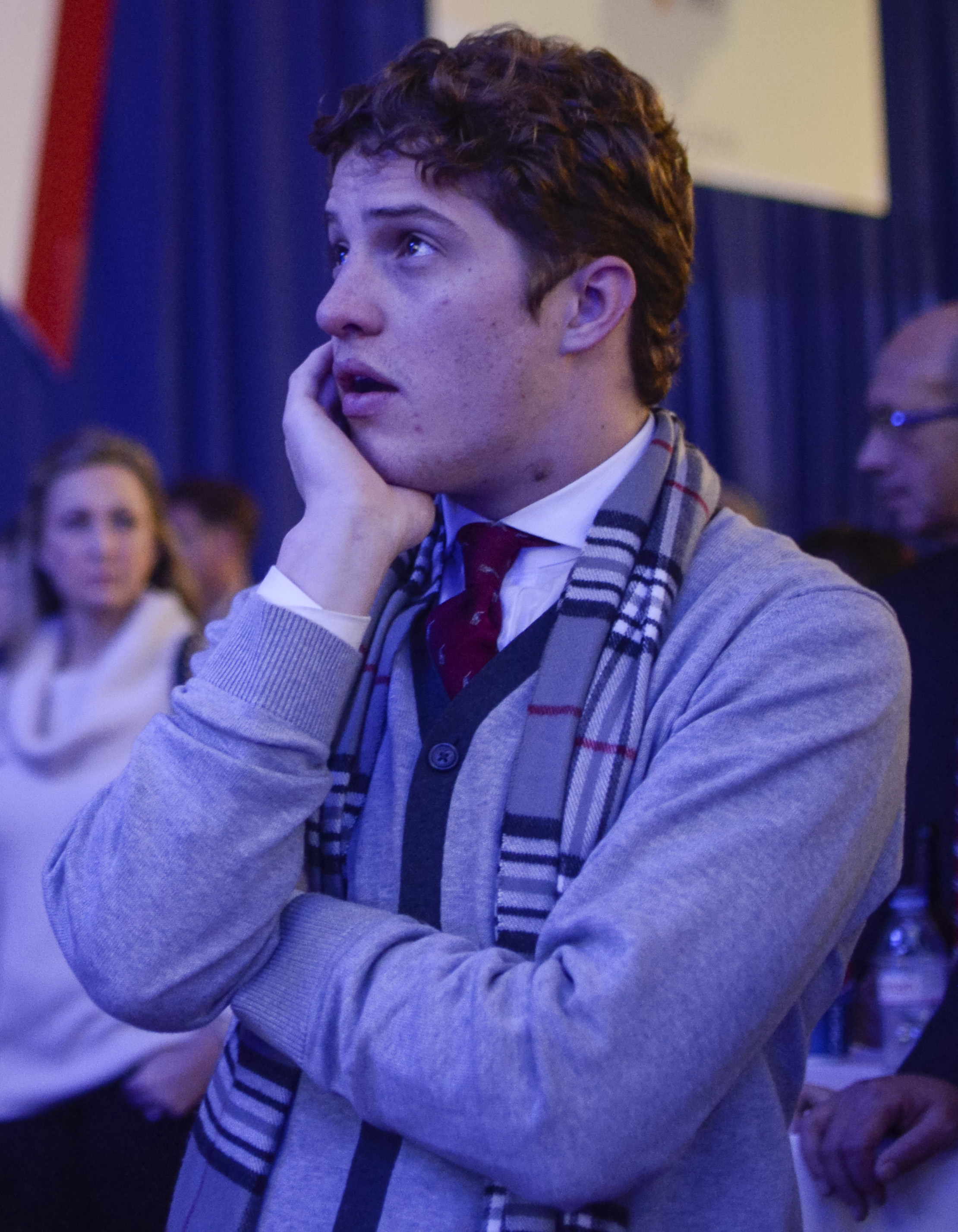 Levi Fox watches election results come in at the Ohio Republican Party election party Tuesday in downtown Columbus. Fox, who lives in Washington, D.C., came to Ohio to campaign for Mitt Romney.