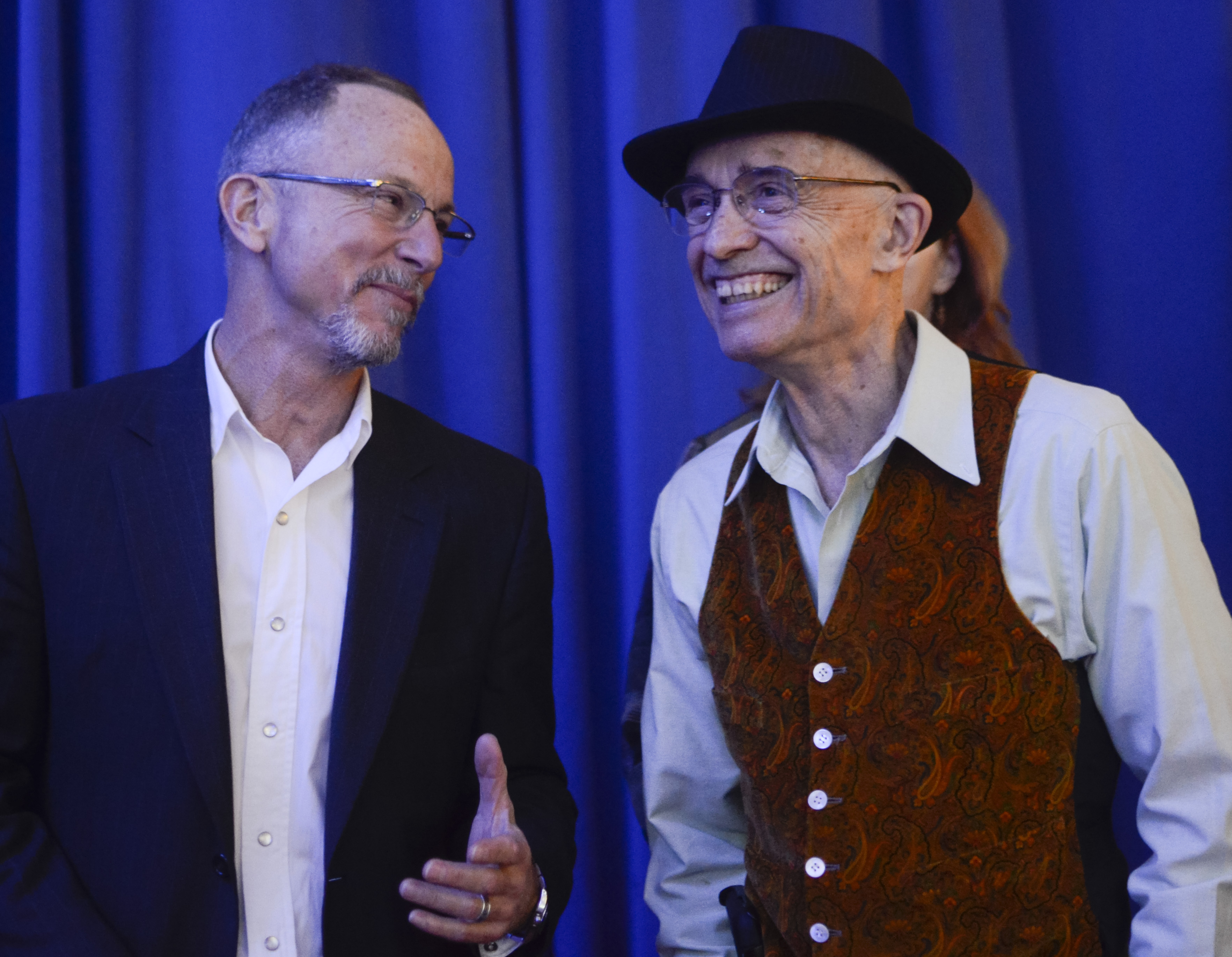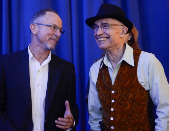 Will Ireland, left, and Marvin Treiger laugh while watching election results come in at the Ohio Republican Party election party Tuesday in downtown Columbus.