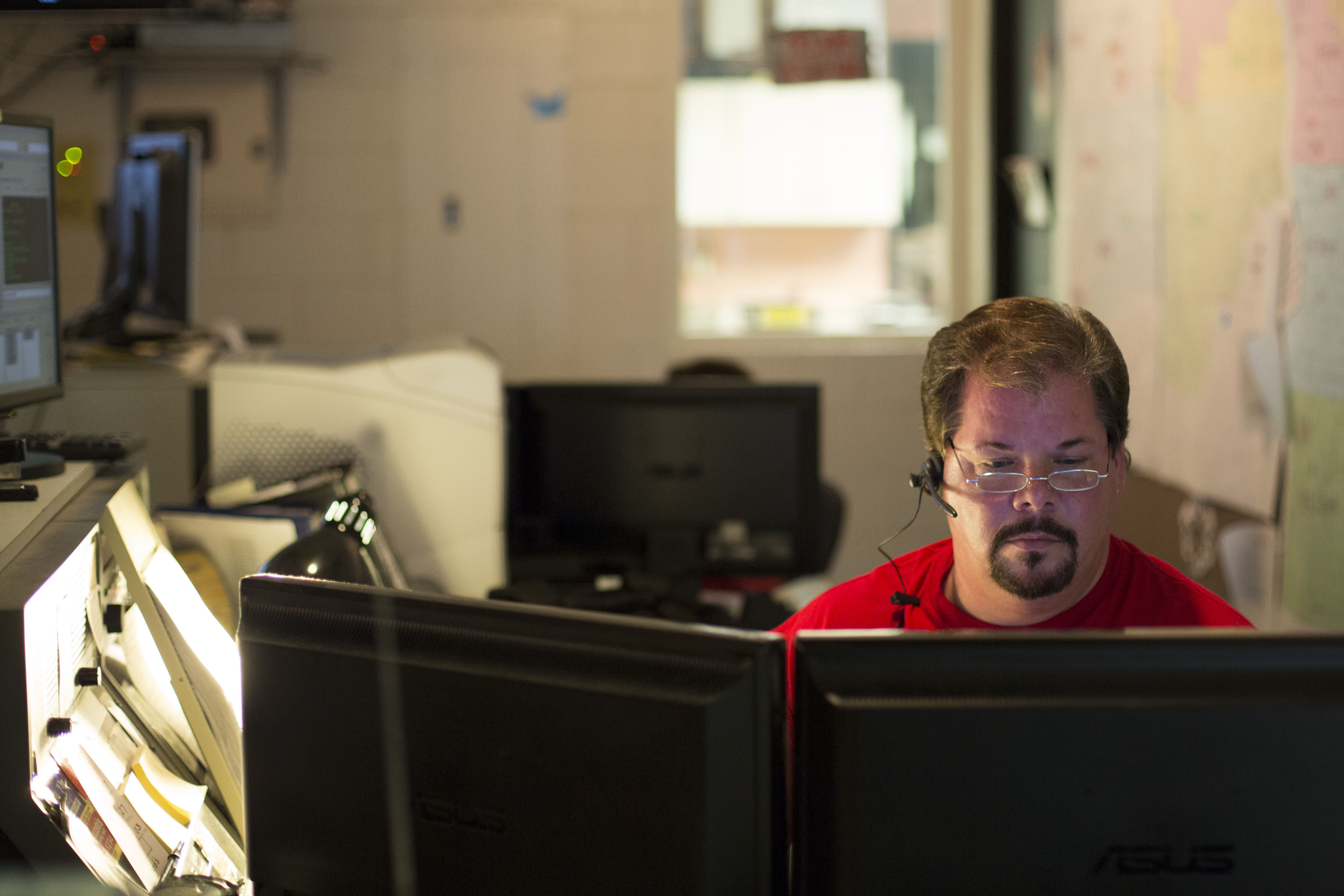 dispatch Published December 4, 2012 at 4775 × 3183 in Calling 911 Freddie Sturgeon works December 4, 2012, at Central Emergency Dispatch Center at the Bloomington Police Department in Bloomington, Ind.