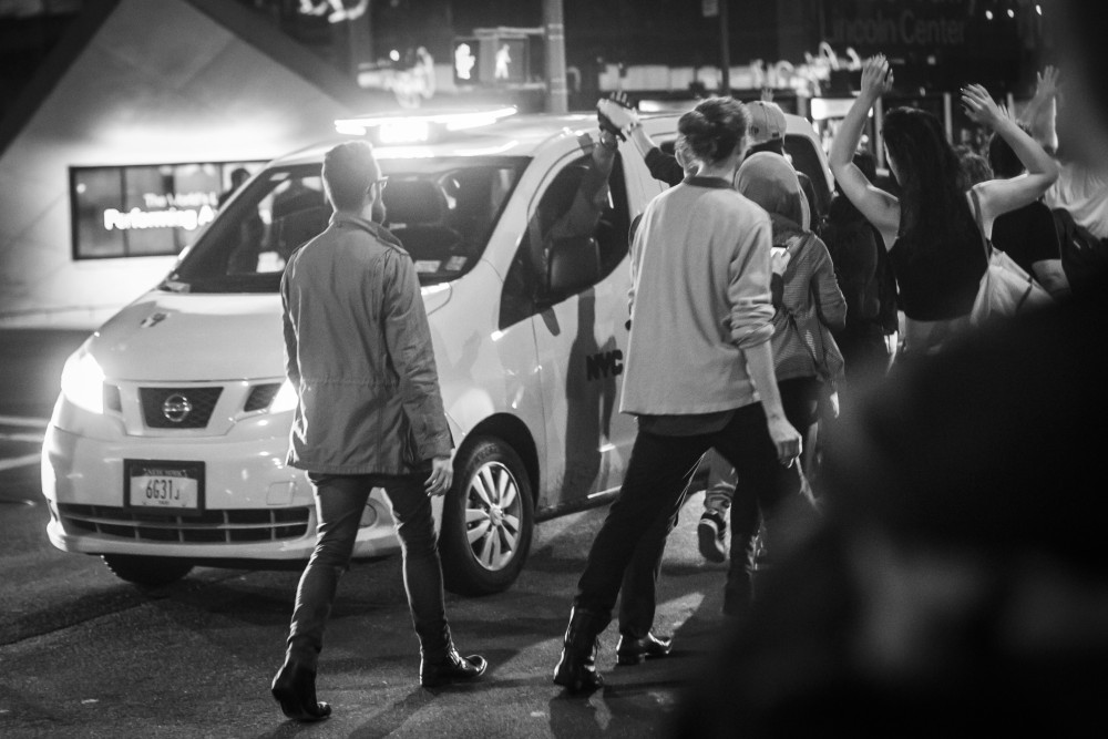 Published November 25, 2014 at 1000 × 667 in Hands up! Don’t shoot! The unsanctioned march through Manhattan brought traffic to a halt. Some people, like this cab driver, expressed support for the protesters.