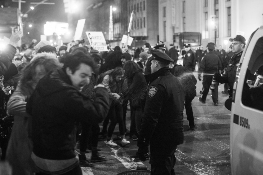 Published December 5, 2014 at 1000 × 667 in I Can’t Breathe! An NYPD officer sprays protesters with pepper spray at the intersection of West 18th Street and 8th Avenue on Thursday, December 4, 2014.