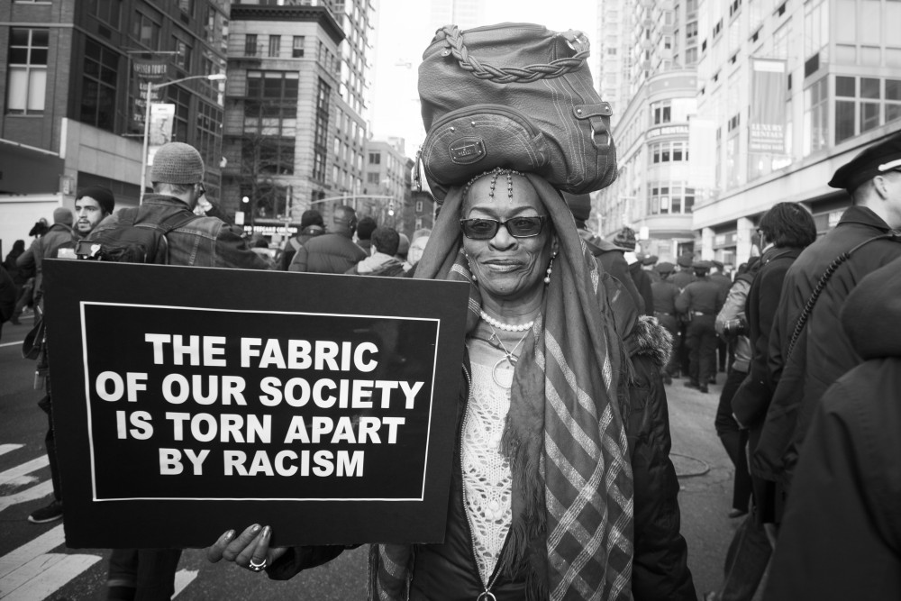 Published December 13, 2014 at 1000 × 667 in Millions March NYC A demonstrator poses with a sign during the Millions March on December 13, 2014 in NYC.