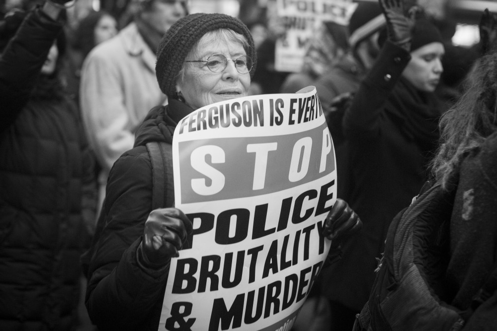 Published December 13, 2014 at 1000 × 667 in Millions March NYC A demonstrator holds a sign during the Millions March on December 13, 2014 in NYC.