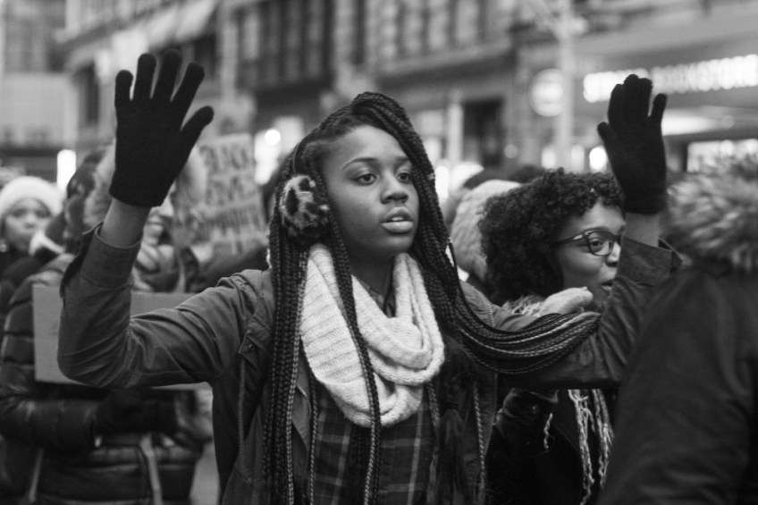 Published December 13, 2014 at 1000 × 667 in Millions March NYC A demonstrator holds up her hands during the Millions March on December 13, 2011 in NYC.