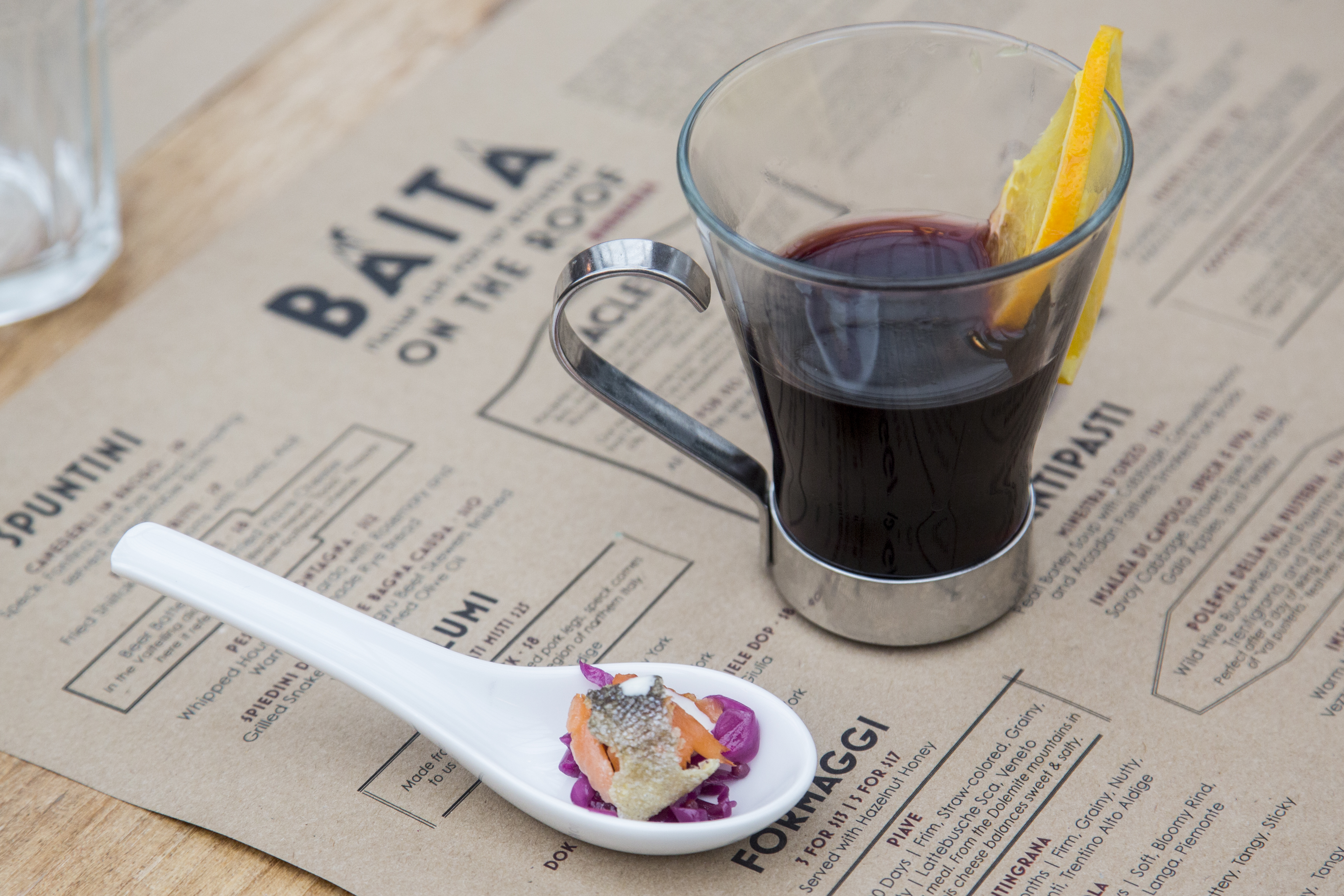 Published December 2, 2015 at 4639 × 3093 in From Beer Garden to Ski Lodge Arctic char with braised red cabbage; wine mulled with cloves, cinnamon, star anise, and orange peel