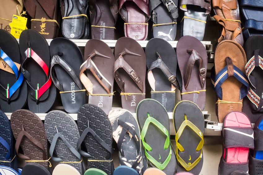 Sandals Published March 12, 2016 at 4896 × 3264 in Hanoi, Part 2 Vietnam is a wonderful place to get “designer” fashioned, like these flip-flops purportedly made by Hermes, Dior, and “Lacostes.”