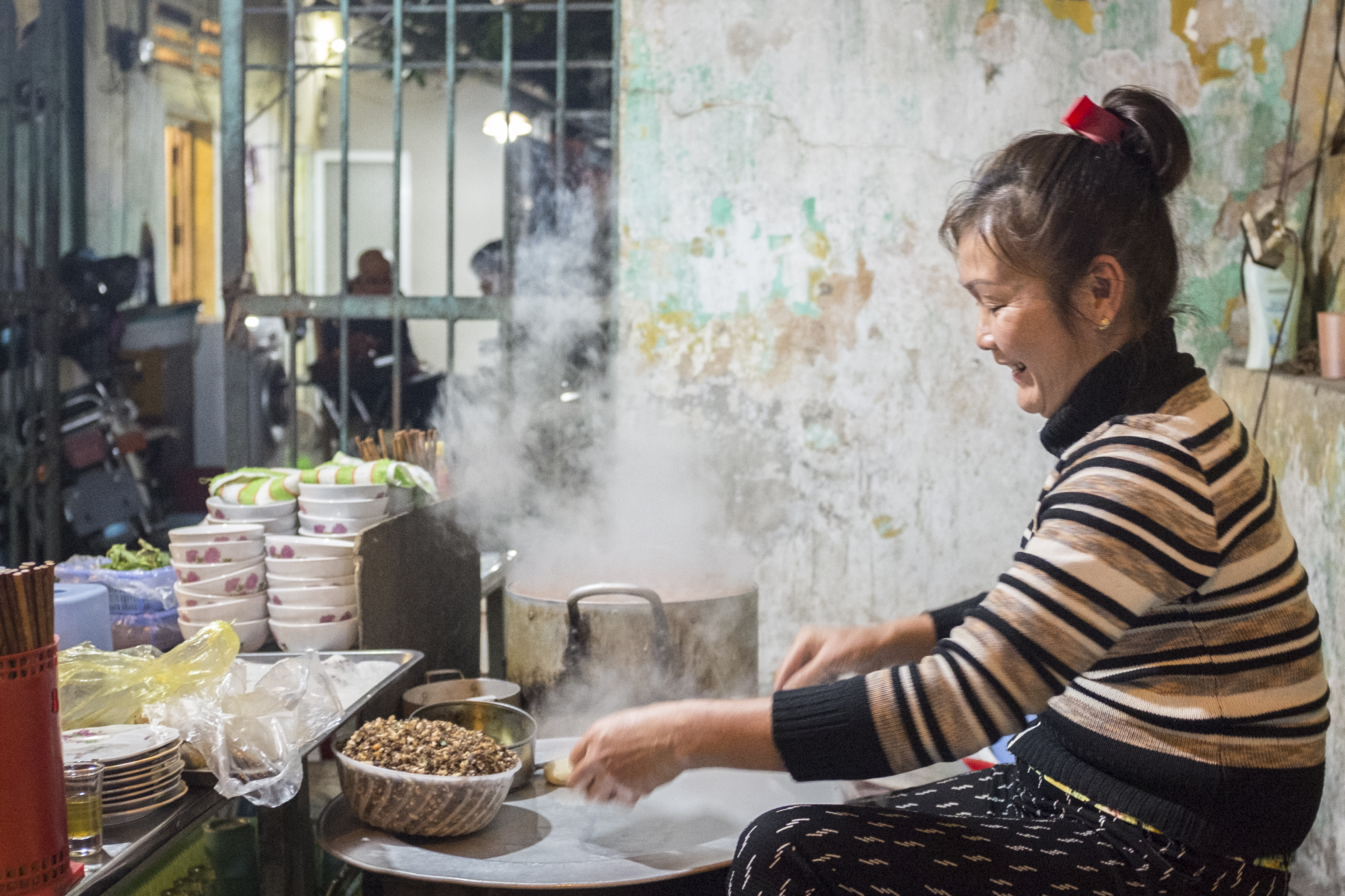 Banh Cuon Published March 25, 2016 at 3407 × 2271 in Cat Ba Island A street vender prepares banh cuon, rice batter crepes filled with a minced mixture of pork and mushrooms.