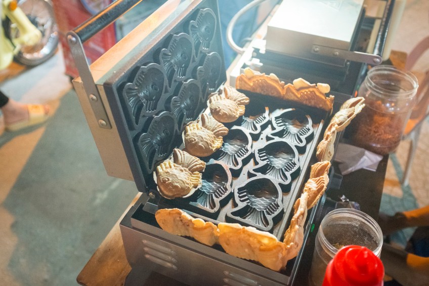Taiyaki Published April 18, 2016 at 4896 × 3264 in Follow the Students In central Vietnam we saw these savory fish-shaped cakes, seemingly a close relative to Japanese taiyaki.