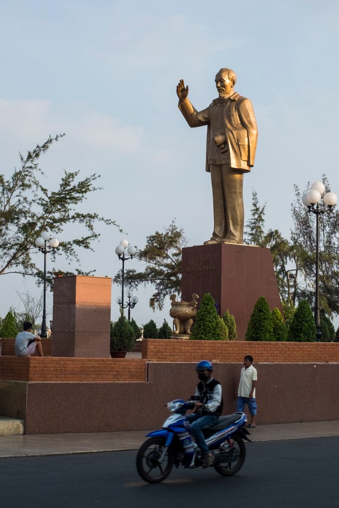 Uncle Ho Published July 25, 2016 at 1776 × 2664 in Floating Markets and Pizza Cones People pass a large statue of Ho Chi Minh in Can Tho.