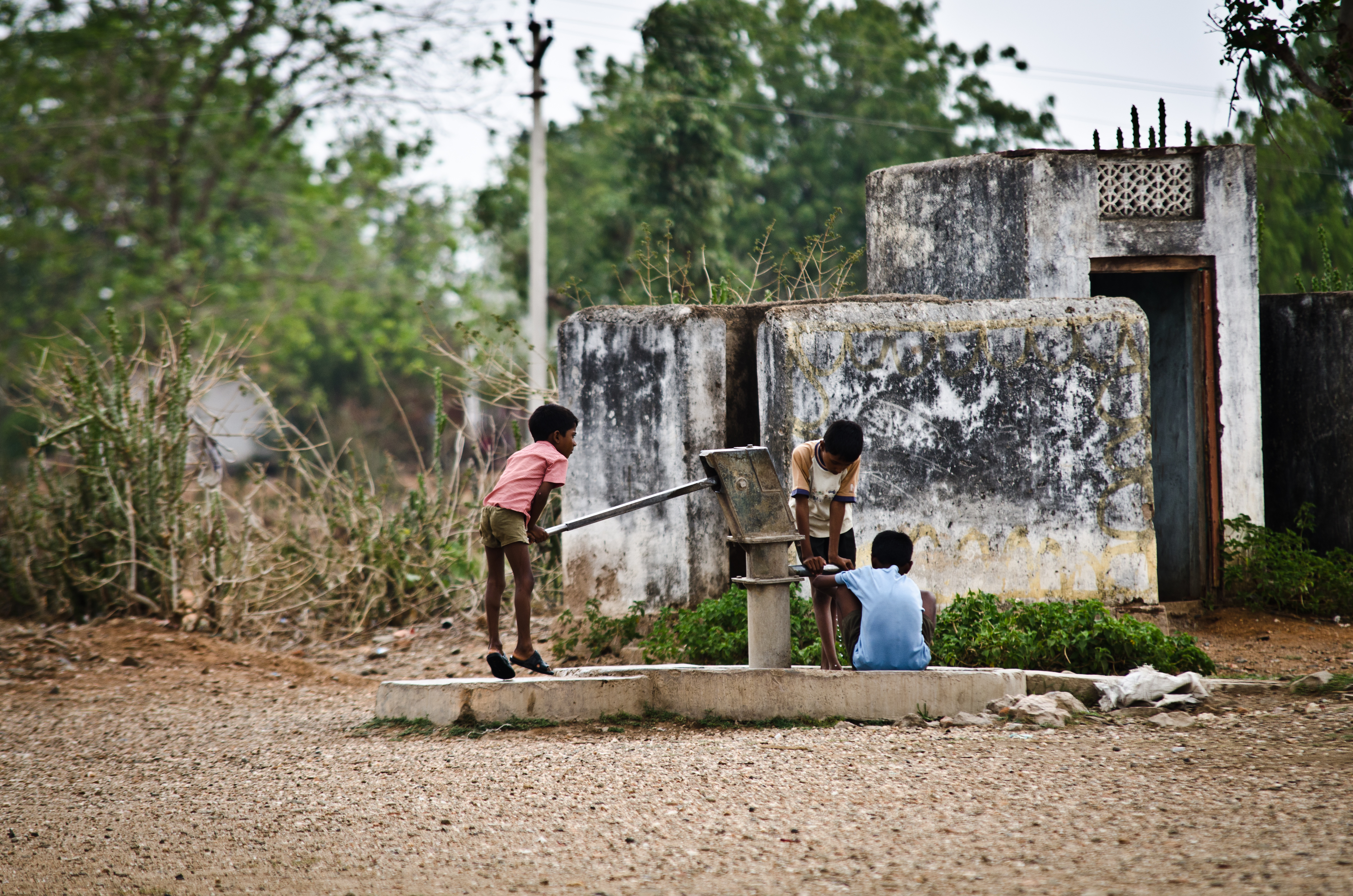 Young children pump water at the Indian Forest Rights Act Yearly Conference on June 16, 2011 in Rajasthan, India. The conference brought together Forest Service officials, representatives of village councils, and workers with non-governmental organizations to discuss land use issues.