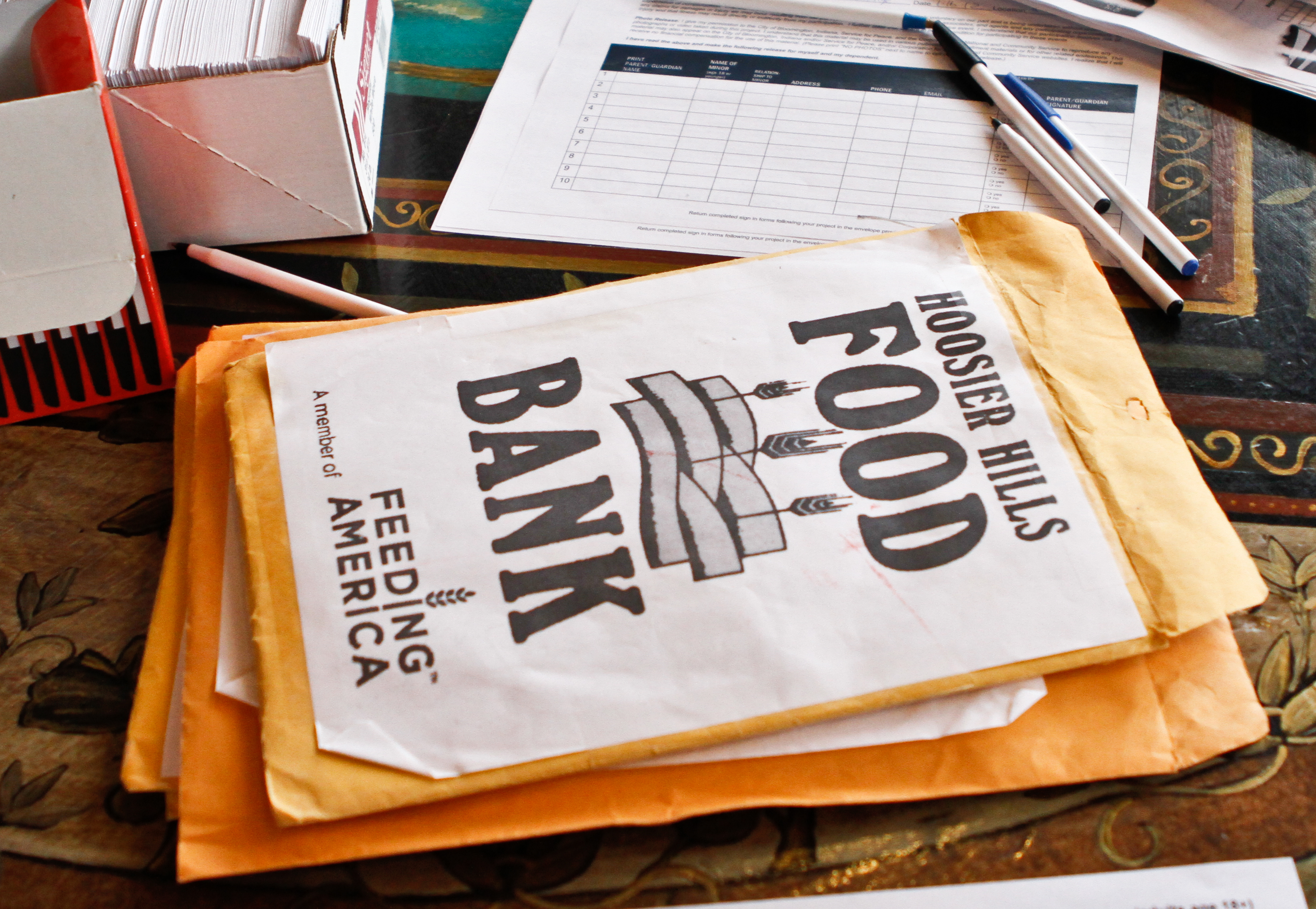 Volunteers for Change organized a Martin Luther King, Jr. Day food drive for Hoosier Hills Food Bank on Jan. 16, 2012 in Bloomington, Ind. Volunteers met at Rachael’s Cafe, a local coffee shop, before heading out to different parts of town to go door-to-door collecting canned goods and other nonperishable items. One such group was comprised of Bloomington resident Catalina Lear, her son Avram, 8, her daughter Bella, 10, and Bella’s friend Sophie Allen, 10.