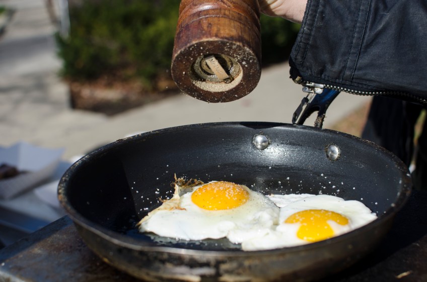 Happy Pig Published June 1, 2014 at 4928 × 3264 in Food Eric Sjaaheim, owner of Bloomington, Indiana food cart Happy Pig, grinds pepper onto fried eggs. Like Loading...