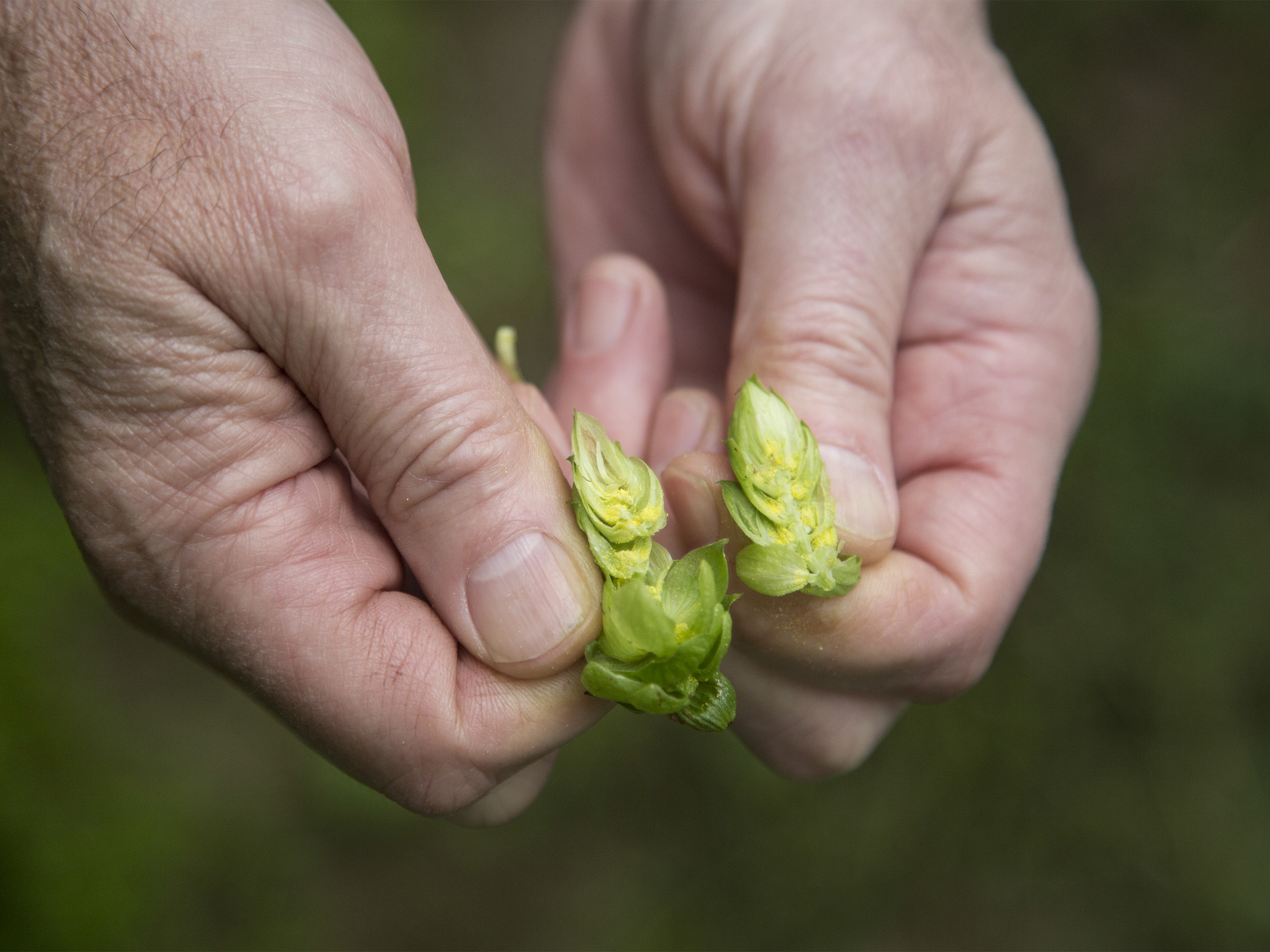 Goose Island Brewmaster Brett Porter holds up a split Cascade hop cone. Published November 17, 2014 at 2800 × 2100 in Elk Mountain Hop Farm Like Loading...