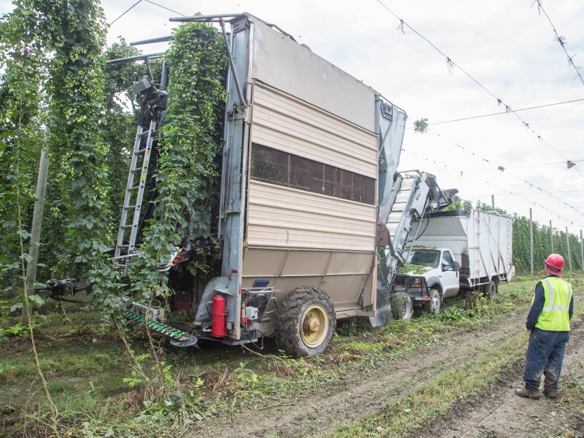 hopfarm4 Published November 17, 2014 at 2800 × 2100 in Elk Mountain Hop Farm Saaz hops are picked by a large combine. Saaz is harvested at the beginning of the season, which starts in earnest in September. Like Loading...