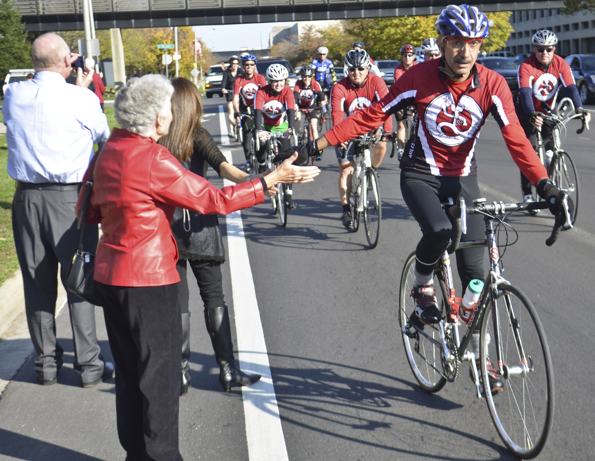 cpoy_rnab_21 Published October 27, 2012 at 2000 × 1551 in Miles for Myeloma Rider Eddie Srour greets onlookers at the end of the ride on Saturday in Indianapolis, Ind. The cyclists finished at the Simon Cancer Center, where Abonour works. Like Loading...
