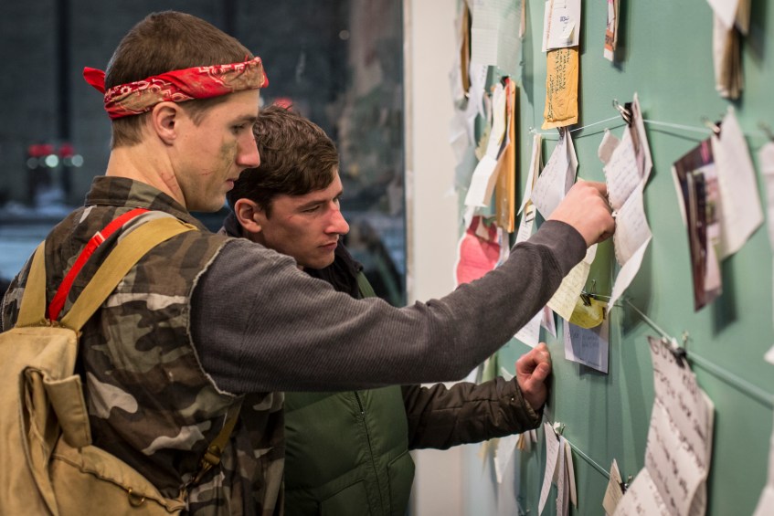 Published December 23, 2012 at 4082 × 2721 in Two members of Know No Stranger look at an exhibit of found objects.