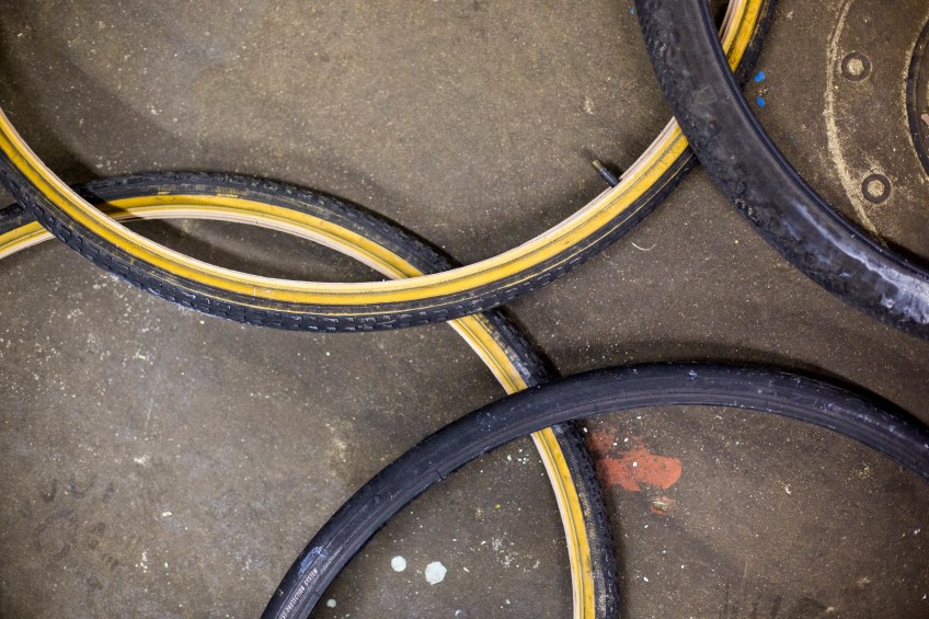 Tires lie on the ground as part of an obstacle course.